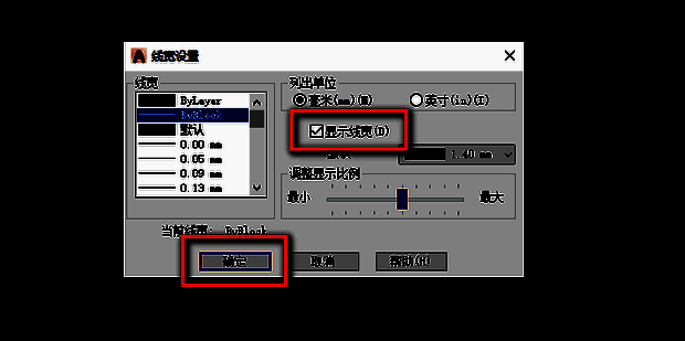 3、接着勾选显示线宽,点击确定即可,如下图所示。