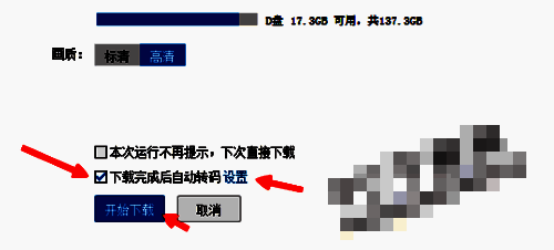 5.如果想要在视频下载好之后自动转码的话,我们可以随便找到一个视频点击到下载页面,在里面我们将下面的一个下载完成后自动转码选中,然后点击后面的设置,将格式设置好之后点击下载即可,下载完成之后自动开始转码任务。