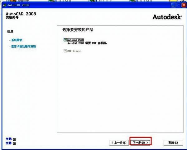 第五步:选择安装AutoCAD2008,勾选auto CAD 2008点击下一步继续。