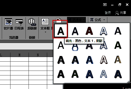 4、 选择艺术字样式:插入艺术字后,选择第一个样式。