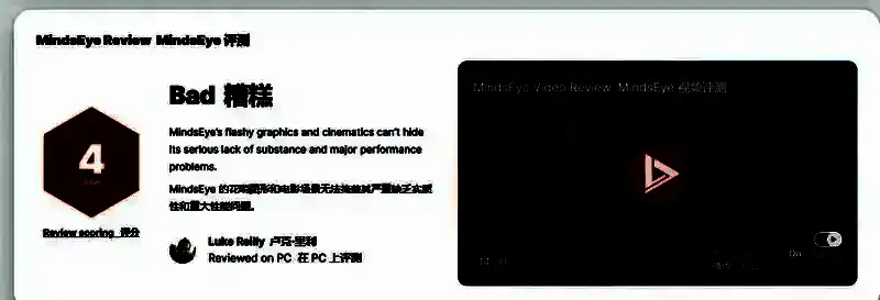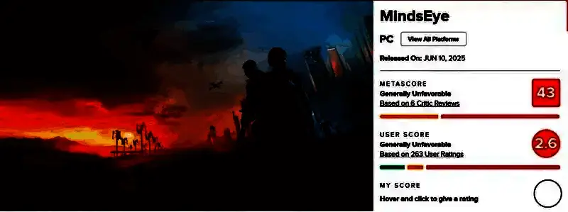 近日,顶着前GTA制作人名气的大作《心之眼》已经发售,但该作灾难般的优化和稳定性让玩家和媒体都非常失望,M站不仅玩家均分2.6,差评如潮,而且媒体均分也仅为43分,成为今年评分最低的游戏,载入史册。