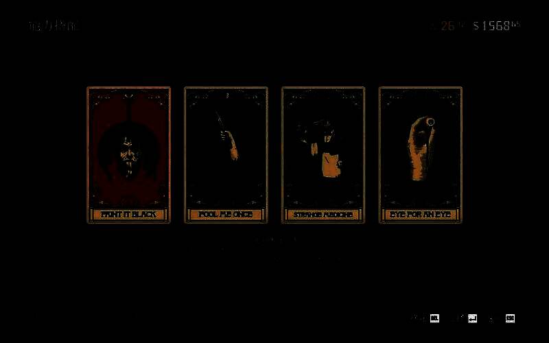 最后就是能力搭配,我也是看了好多卡组推荐的视频,最后我做任务选择的卡组是:死神标记-吸取教训-奇异药品-以眼还眼,这套卡组能用死眼自动标记敌人,还有减伤和回血,且爆头击杀敌人还能恢复死眼,作为萌新来说这套卡牌蛮适合初期用的。