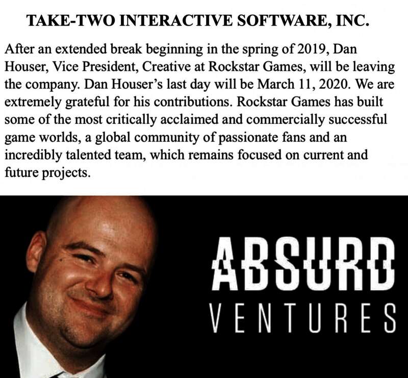 随着三版剧本全部遭到拒绝,Dan Houser于2019年春天选择长期休假,并最终于2020年正式离开Rockstar。这一离职消息也由母公司Take-Two在新闻稿中确认。