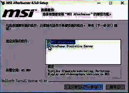 3.跟随安装向导的提示,连续点击"下一步",直至到达选择组件的步骤。在这里,请确保在"RivaTuner Statistics Server"选项前勾选。