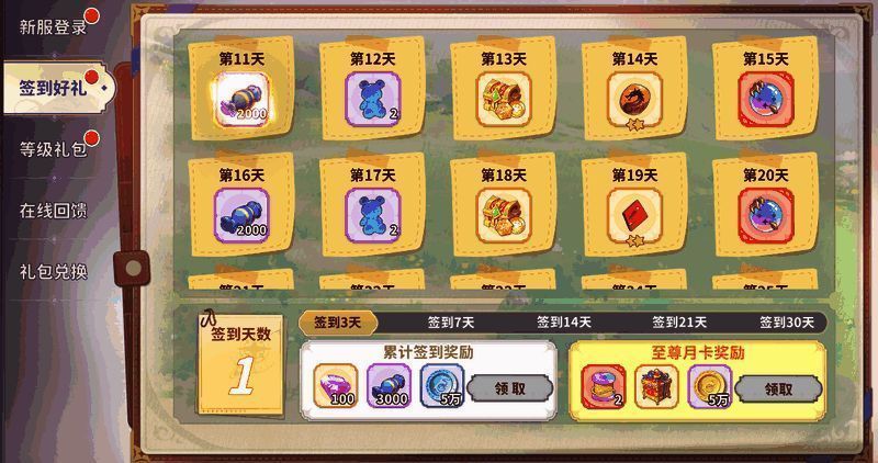 每日登录在对应页面进行签到,即可领取签到福利,签到时间越长,福利越丰厚哦。