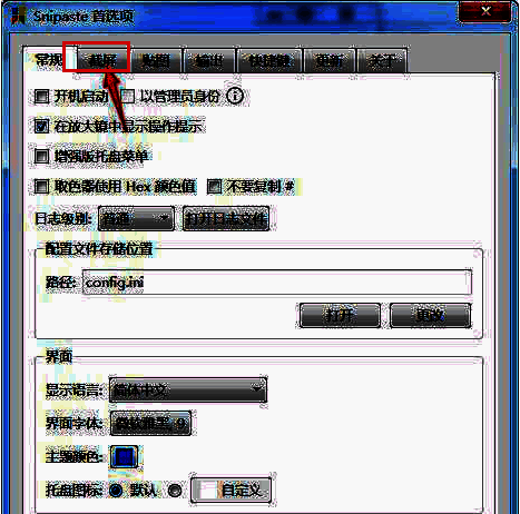 2.然后,在打开的首选项窗口中找到截屏栏目