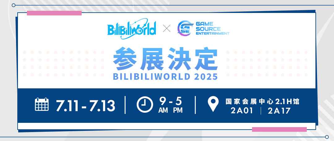 Game Source Entertainment(GSE)宣布,将首次正式亮相中国内地的ACG大型盛会——「Bilibili World 2025」!活动将于2025年7月11日(五)至13日(日)连续三天在上海国家会展中心举行,GSE将于2.1H馆【2A17】号展位与大家见面。届时我们将为大家带来丰富多样的游戏试玩体验,以及一系列精彩纷呈的活动内容,敬请期待!