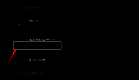 3.最后,找到end with a newline按钮,如下图所示鼠标点击取消勾选即可