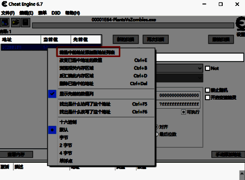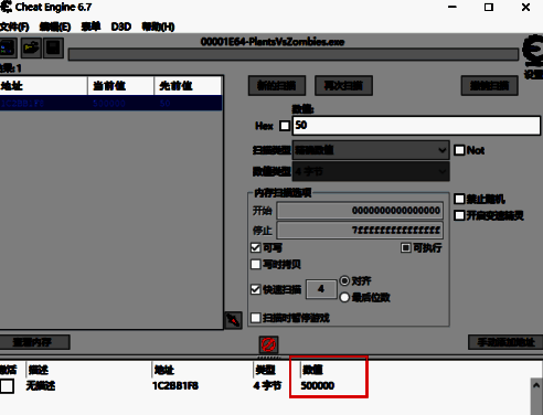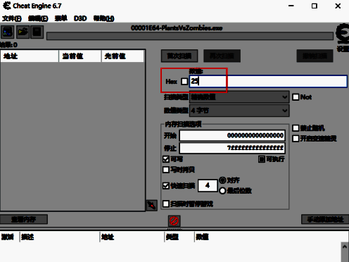 ait+tab切换到游戏,查看游戏内太阳数量。一开始是50个,先消灭,搞到25。ait+tab切换到ce