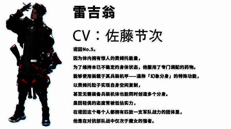 影片中介绍了被称为“天国的恶魔”、隶属于“统制局”的最强部队——“诺因”的成员。