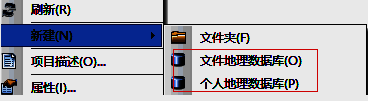出现下面红色红框的两个数据库文件 一个是GDB 和 MDB 数据库 可以根据自己的需要建立
