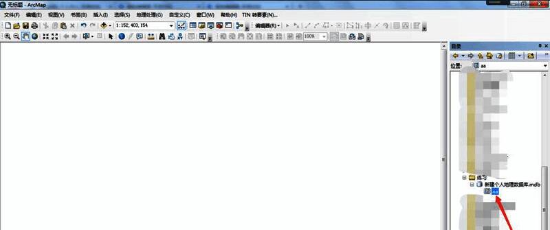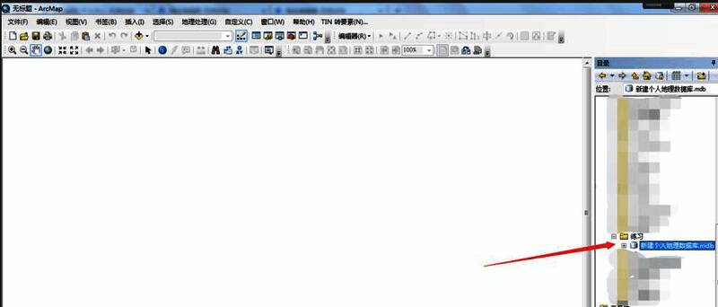 第五步:点击连接到的文件夹前面的加号,选择一个子文件夹(这里是“练习”),点击鼠标右键,依次选择“新建-个人地理数据库”