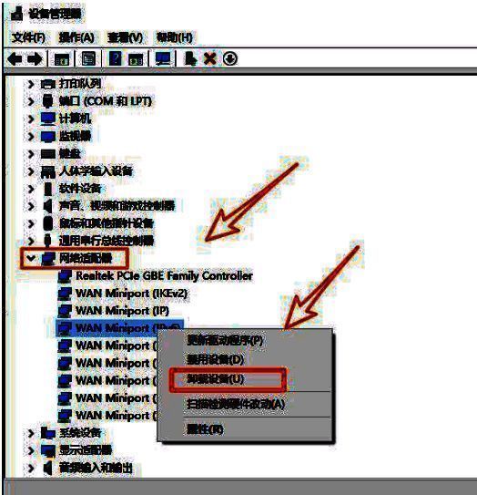 打开网络适配器,在这里将所有的虚拟机网络适配器卸载。