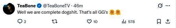 FUT-TeaBone第一时间发推:”我们打的像狗屎一样,一切都结束了。“