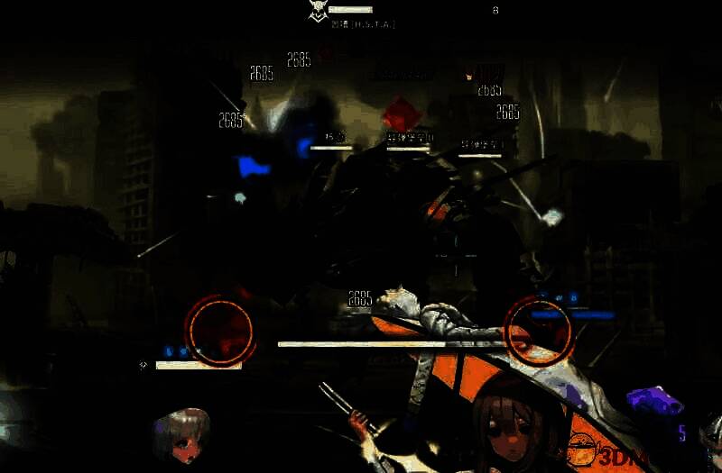 初始阶段每波刷新两个红圈,打爆会远离,没打爆会贴近,第一阶段有三次容错。 与此同时两侧的挖土机会时不时射出两发飞弹,对妮姬造成眩晕和一定伤害。在打到四的阶段时候会进入二形态,开始每次会多刷一个红圈,即一次生成三个红圈。而且在击破之后又很快会出现三个红圈,无穷无尽。第二阶段有两次容错。在进入第七阶段的时候会进入到三形态,这时它会无规则疯狂移动,即使是电脑端玩家也很难瞄准,只有一次容错机会。