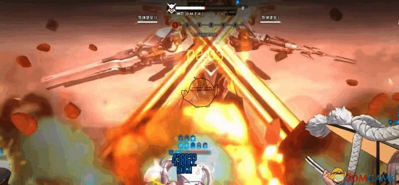 之后它会后退,同时出现两个红圈,不及时打爆会对我方造成强力aoe,然后后撤到远处之后随机找一位妮姬捶地猛击。之后就是这套行动轴的循环。