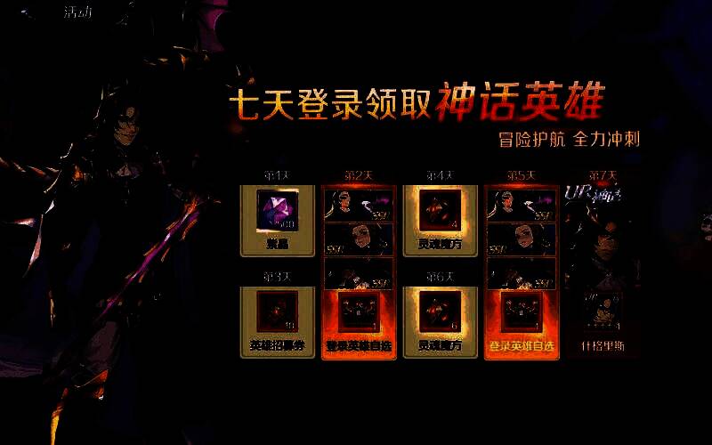 1、首先是7天登录活动,累计登录7天即可领取UR英雄--什格里斯。