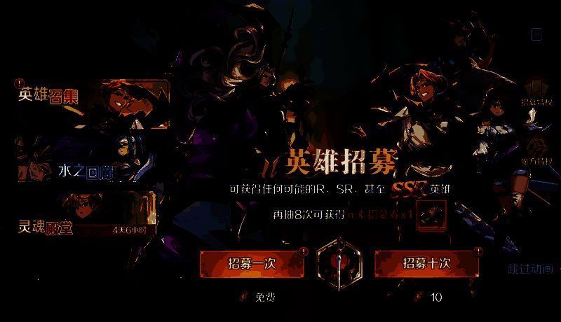 在英雄招募玩法中,通关消耗招募券,抽到UR英雄