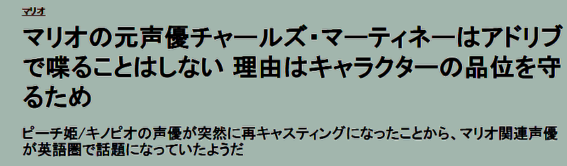 ·马里奥的声音充满着个性,一直都是这位经典角色的灵魂所在,配音演员查尔斯·马尔蒂内一直都不愿在各种场合使用这种独特的声音表演,当然是有原因的。