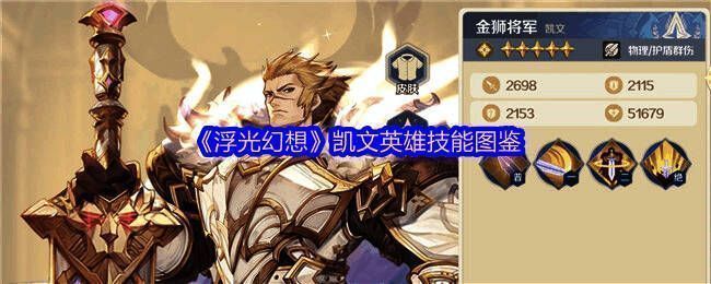 凯文在浮光幻想游戏中是UR英雄金狮将军,该角色天赋是黄金铠甲,意志坚定的黄金狮子永不退缩,每次施放技能后获得1层斩杀,并在3秒内增加30%魔法伤害减免和免疫击退效果。下面是小编给大家带来的《浮光幻想》凯文英雄技能图鉴,感兴趣的小伙伴们一起来看看吧。