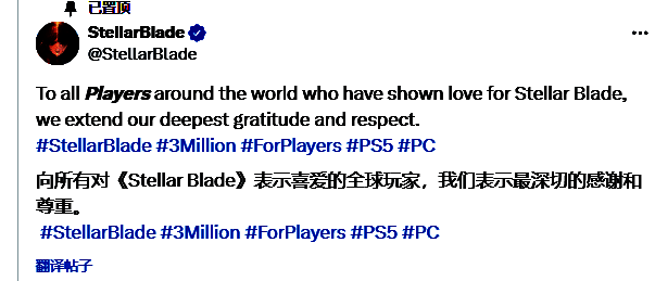官方表示:“向所有对《剑星》表示喜爱的全球玩家,我们表示最深切的感谢和尊重。”