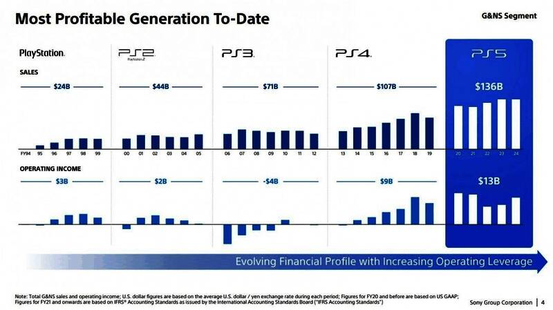 当前主机世代是索尼最盈利的时期。早在一年前,这一代主机的收益就已超越PS4,如今差距进一步拉大——PS5世代已为索尼带来1360亿美元收入,其中大部分来自PS商店的内容销售和订阅服务。