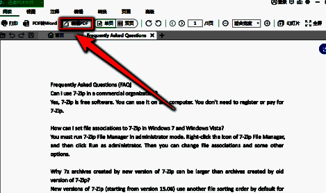 打开pdf文档后,点击工具栏上的“编辑”按钮。