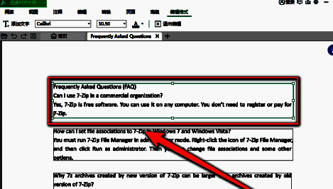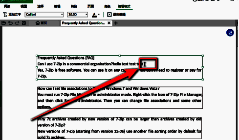 在pdf文档中,点击需要修改的段落,此段落变为可编辑状态。