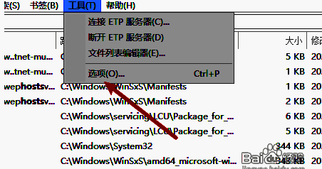 在工具选项的下拉栏目中,选择箭头所指的选项栏,来进入到设置页面。