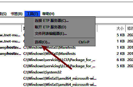 第二步:在工具选项的下拉栏目中,选择箭头所指的选项栏,来进入到设置页面。