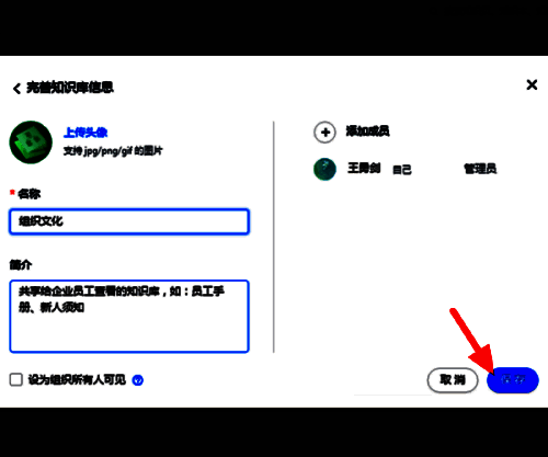 第五步:在完善知识库信息页面,完善信息,点击保存;