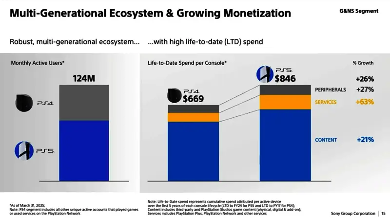 “PS5为玩家提供了体验我们内容的最佳方式,因此其玩家群体持续增长。这些玩家的参与度很高,在内容和服务上的支出比前几代都要高。然而,PS4仍然是现有玩家体验我们内容和服务的重要入口,我们将继续致力于为他们服务。”
