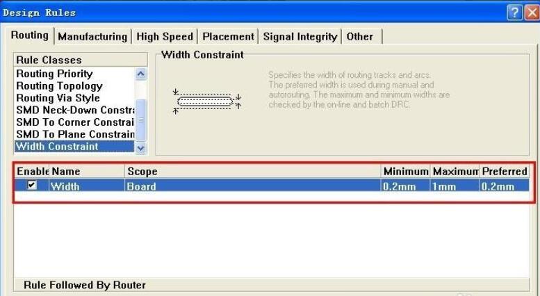 二、设置线径与铺铜相关项,根据各自要求设置即可。