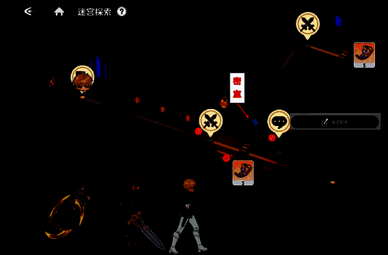 图标①的双剑图标:代表一场战斗,获胜后才能继续前行。同时获得奖励,有些奖励中会有解密道具。