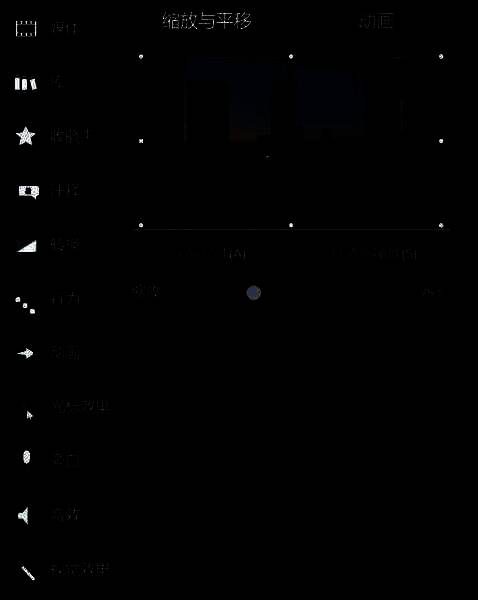 7.除了行为,你也可以为素材添加缩放与平移的效果。这项功能在工具栏中的“动画”中。将播放头调整到视频的某个位置,可以更改该位置的缩放比例。