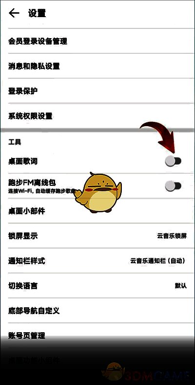 2、下拉设置页面勾选桌面歌词即可在桌面上显示歌词,同样也可以点击设置桌面歌词的锁定状态。
