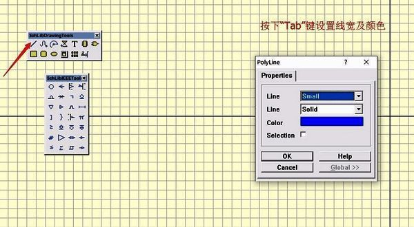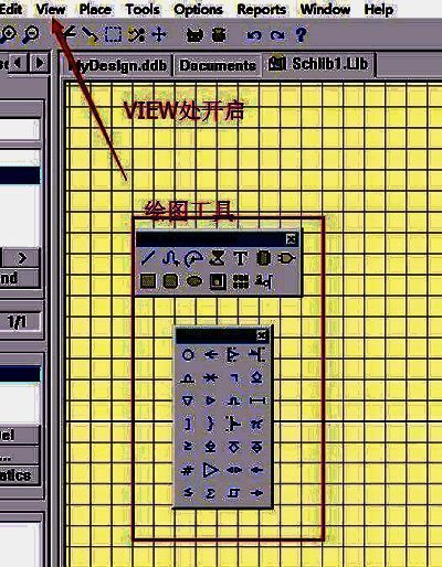 4.在“view”选项中选择绘图工具,开始绘制元器件图形。以电阻为例,选择相应的工具绘制其形状。