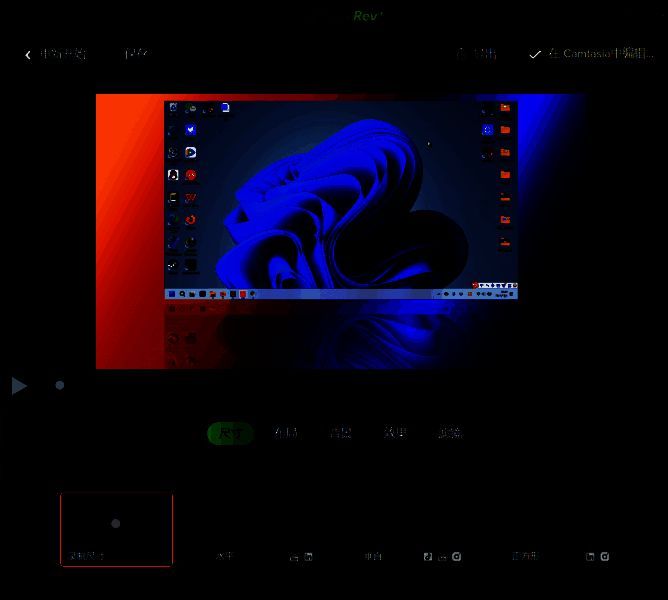 3.如果你在录屏时选择CamtasiaRev这项功能,也可以在下图所示的编辑界面中找到尺寸选项。根据播放设备的不同选择不同的尺寸,可以带给用户更加高清的观看体验。