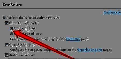 4.之后,鼠标点击勾选Perform the selected actions on save,Format source code以及Format all lines选项
