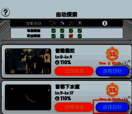 ①自动探索理论上需要选择更高的地图和怪物经验越高,但是受到挑战评分影响;所以大家可以选择一个经验最高的地图怪物