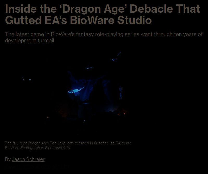 彭博社记者Jason Schreier(前Kotaku编辑)发布了一篇尖锐的文章,揭露了《龙腾世纪:影障守护者》在开发过程中出现的种种问题。