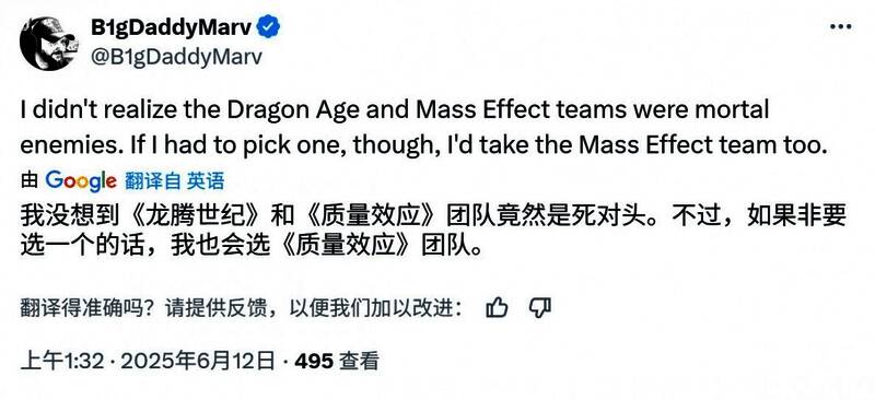 因EA内部偏袒《质量效应》团队,导致积怨已久