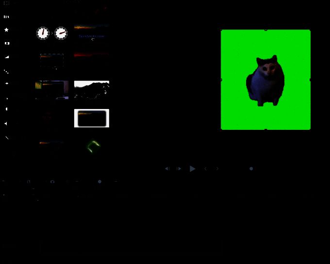 3.完成背景颜色的移除后,将事先准备好的背景图片拖动到下方的时间轴中,就可以实现换背景的效果了。但是要注意将背景素材的持续时间调整到和绿幕素材视频一致,而且背景素材应该置于视频素材的下方,防止视频素材被覆盖。