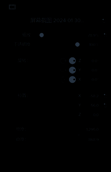 1.选中要编辑的素材,在右侧找到属性功能。在这里你可以通过修改参数对画面进行不同空间方向上的旋转。通过拖动圆圈中的黑点,可以更改画面旋转的角度。如果对旋转的角度有较为精细的要求,也可以直接在右侧的框中输入角度数值。默认的数值单位精确到了分。在该菜单中,除了对画面进行旋转,还可以调整一些其他的参数。例如,更改视频的缩放比例,调整画面的不透明度,更改画面的位置,以及选择是否在锁定宽高比的情况下,调整画面的宽度和高度。