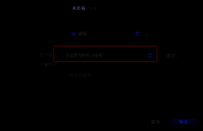 2、在“文件格式”下拉菜单中,选择“导出为MP4(.mp4)”。