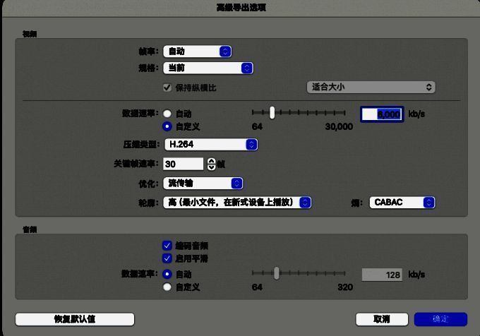 5、另外保存时我们要根据自己的电脑配置来设置分辨率,如何设置参数呢?我们点击文件格式后面的选项,进入页面,调整参数即可。
