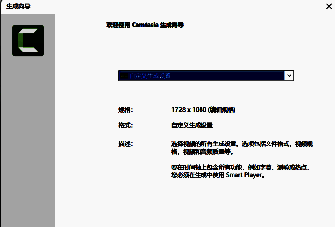 1.如果想要最终导出的视频有着较高的清晰度,可以选择在导出时进行设置。在使用导出的视频生成向导时,选择菜单中的“自定义生成设置”。
