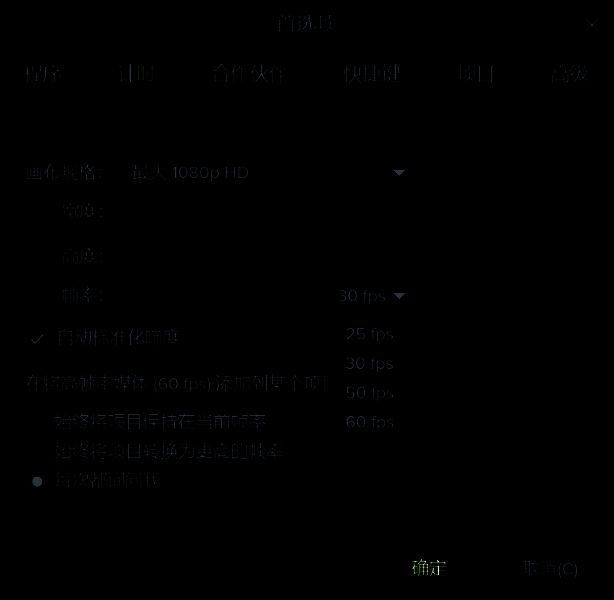 4.在首选项菜单中,找到项目设置。在这里同样可以更改画面的分辨率和帧率。如果想要视频更加清晰流畅,可以将这两项参数尽可能调大。不过,在调大参数的同时也要参考到自己的电脑配置是否支持哦!