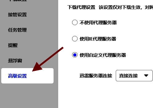 第四步:最后勾选高级设置的【迅雷服务器连接】,点击直接连接即可。