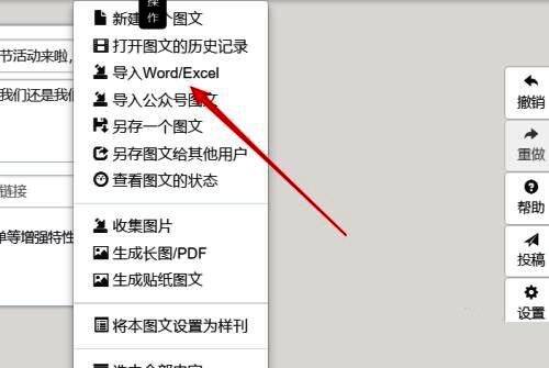 3、接着进入新界面,点击上方的下拉图标,选择下方选项列表中的"导入Word/Excel"选项,如下图所示。
